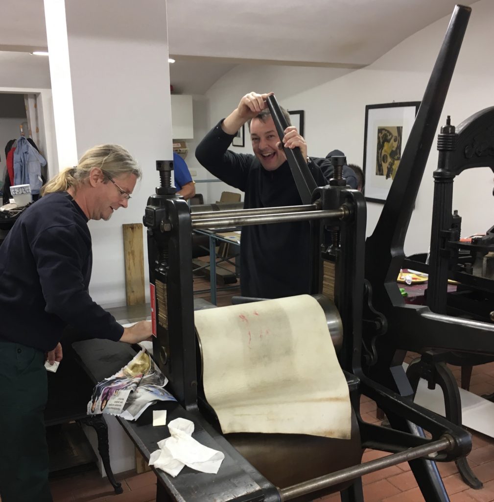 Als besondere Intention gilt uns die Förderung und Würdigung der Druckgrafik. Aus diesem Grunde vergeben wir seit 2018 ein Stipendium, bei dem Künstler in unserer Druckwerkstatt für Hoch- und Tiefdruck vier Wochen arbeiten, sich ausprobieren und experimentieren können. Eine Präsentation des Werks, das während des Stipendiums entstanden ist, schließt den Aufenthalt ab.