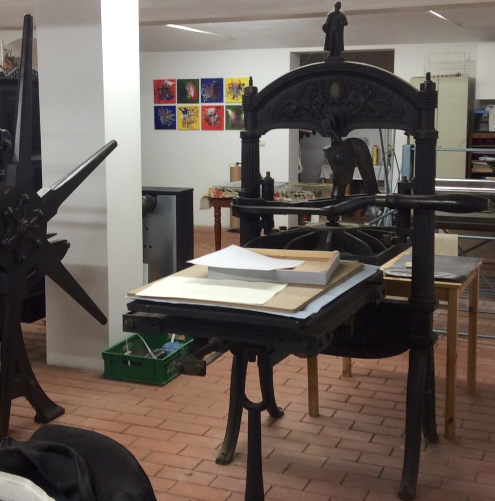 In der Druckwerkstatt des Quellenhofes kann man in den Drucktechniken – Hochdruck, Tiefdruck und Flachdruck arbeiten.