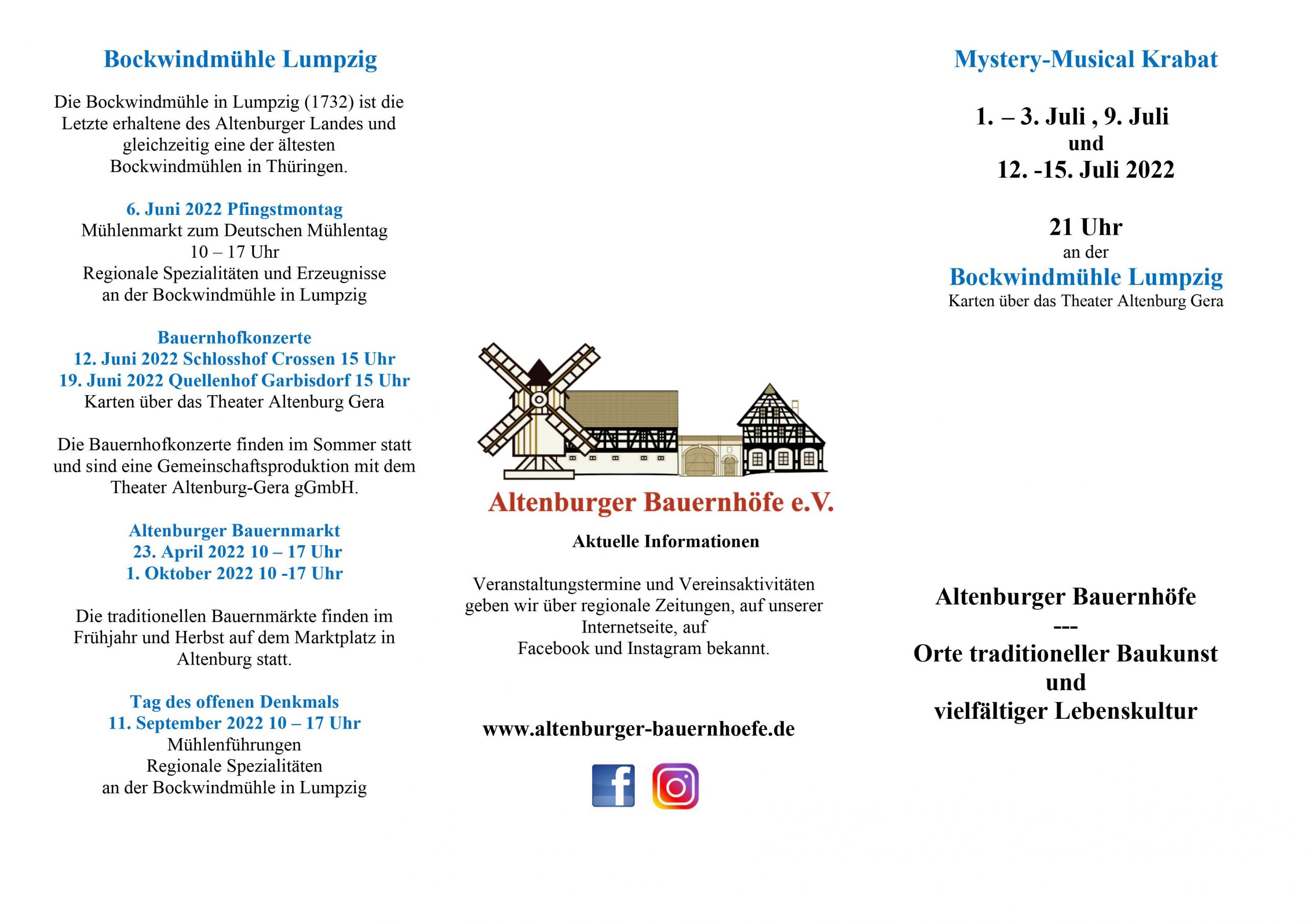 Am 19. Juni wird um 15:00 Uhr zum Bauernhöfekonzert mit dem Philharmonischen Orchester Altenburg Gera eingeladen, veranstaltet vom Theater Altenburg in Zusammenarbeit mit dem Verein Altenburger Bauernhöfe und dem Heimatverein Göpfersdorf. Der Flyer von Altenburger Bauerhöfe e.V. mit weiteren Veranstaltungen in diesem Jahr Altenburger Bauernhöfe e.V.